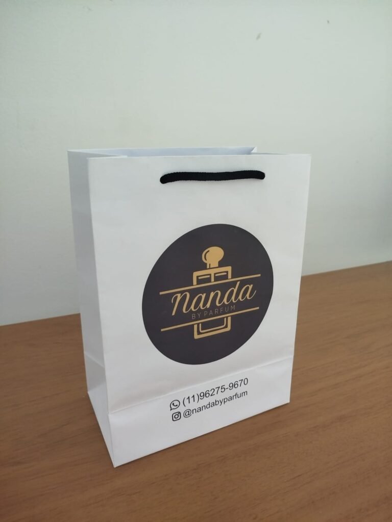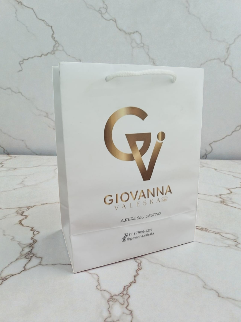 A sacola de papel off set 180g personalizada combina design sofisticado e praticidade. Com acabamento em impressão silk ou colorida sobre fundo branco, é perfeita para agregar valor às suas semi joias e bijuterias.