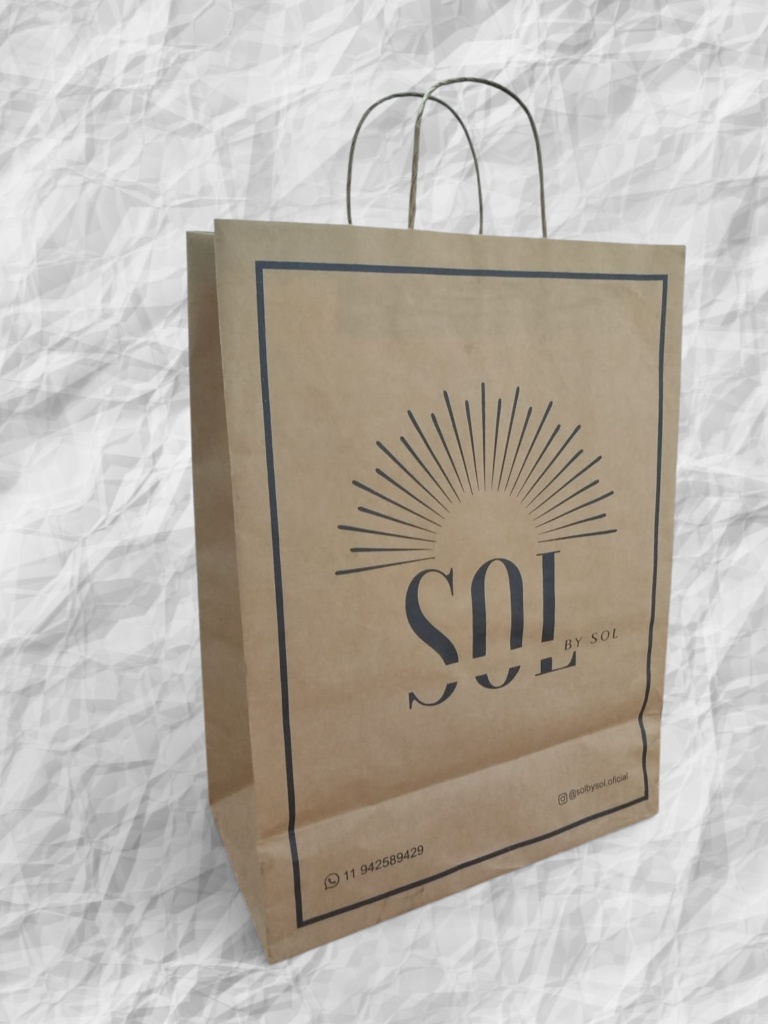Sacola de papel kraft 110g personalizada nos dois lados da sacola